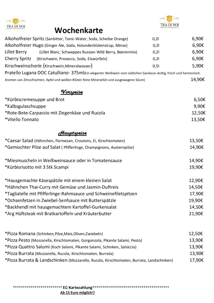 Willkommen in unserem Ristorante Tra Di Noi