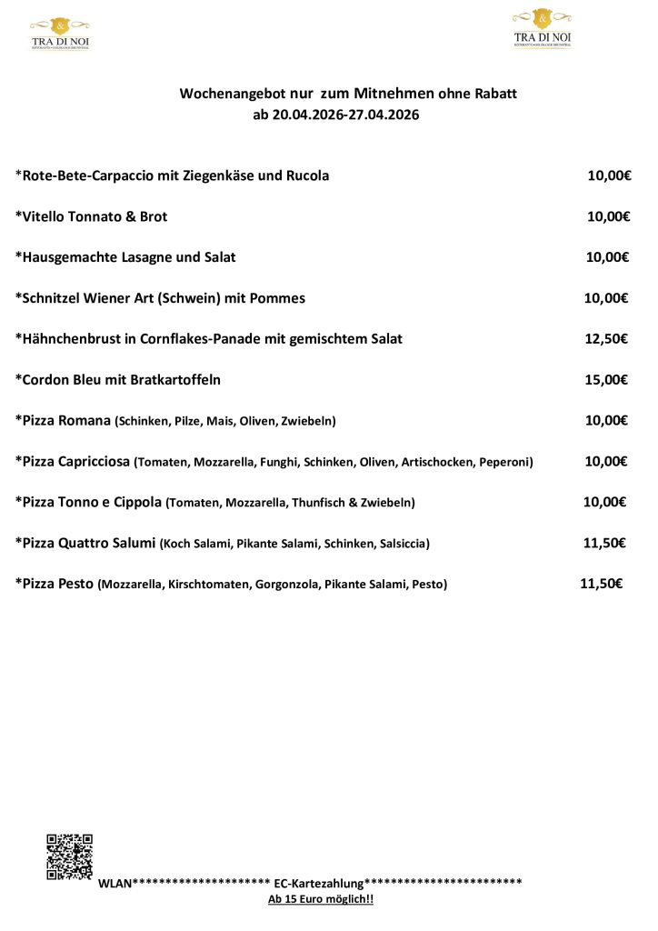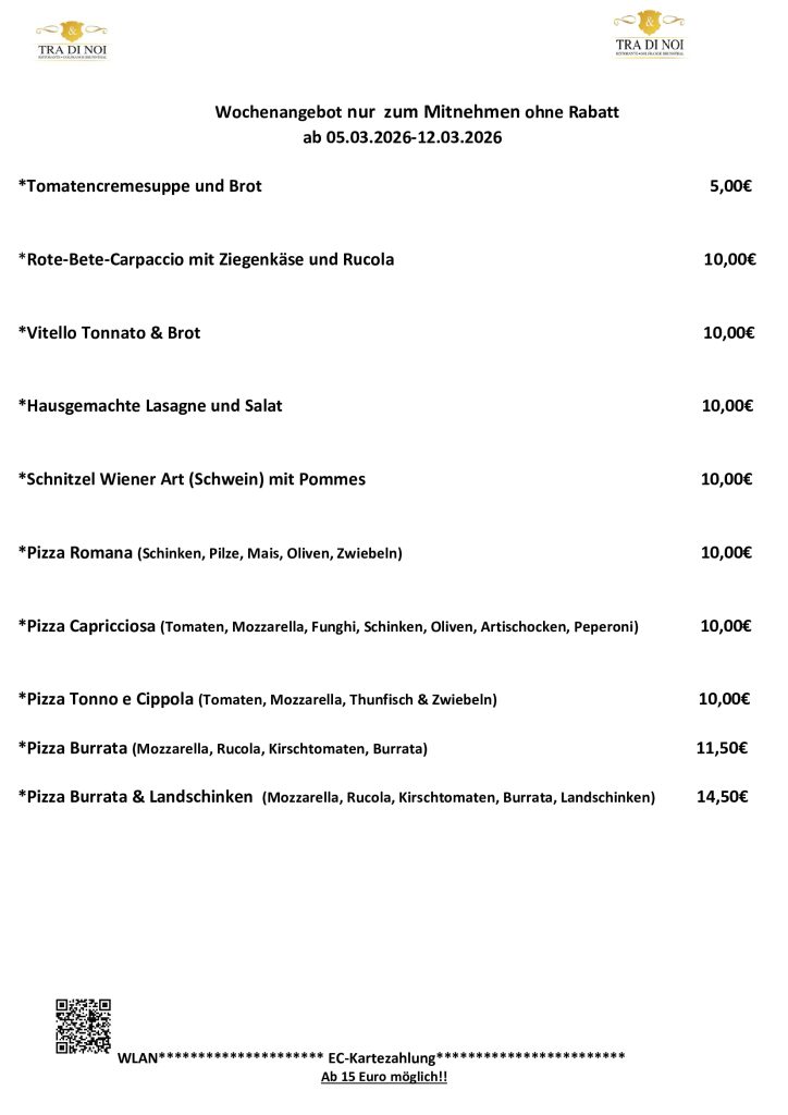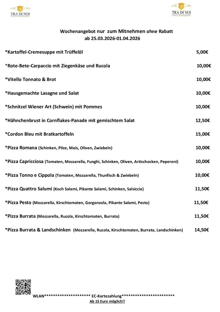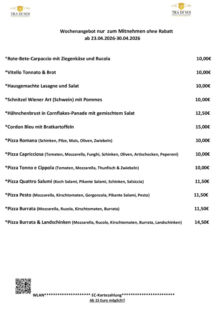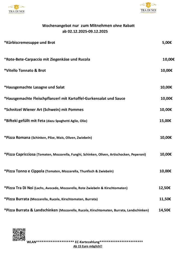 Alle Gerichte auch zum Mitnehmen. 10 % Abholrabatt. Einfach anrufen, bestellen & abholen.