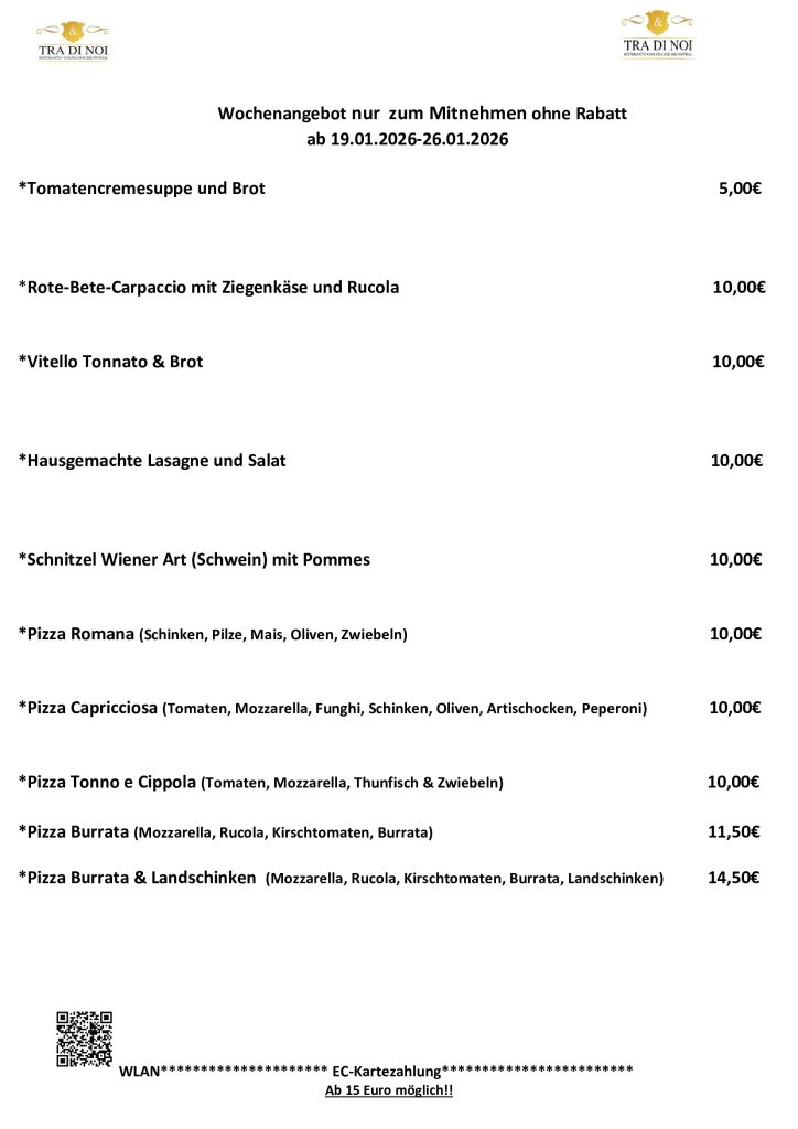 Alle Gerichte unserer kompletten Speisekartegibt es auch zum Mitnehmen. Dafür erhalten Sie 10 % Abholrabatt. Wir freuen uns auf Ihre Bestellung.